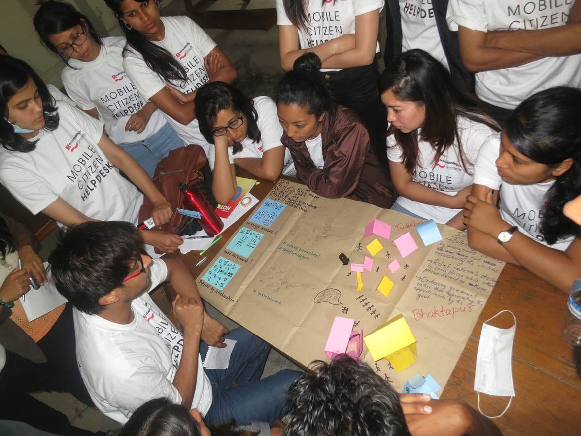 Mobile citizen helpdesk volunteers meet to review progress one week after the earthquake on the basis of field visits to three affected districts. There are now more than 120 Accountability Lab volunteers in the ten most affected districts.